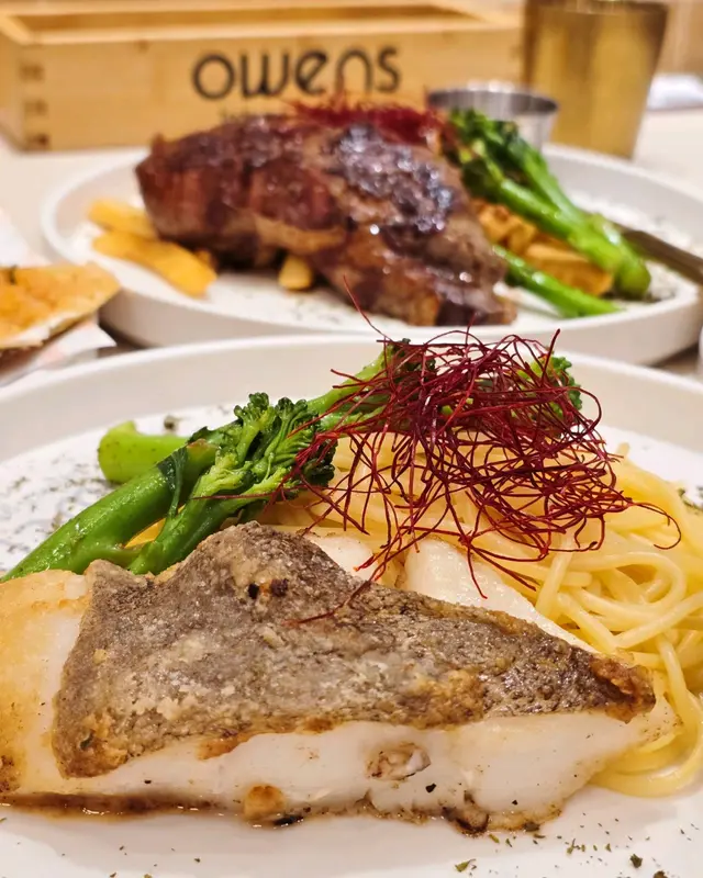 主菜點了香煎比目魚柳配意粉,厚切的比目魚柳外皮煎至酥脆,肉質保持軟嫩。