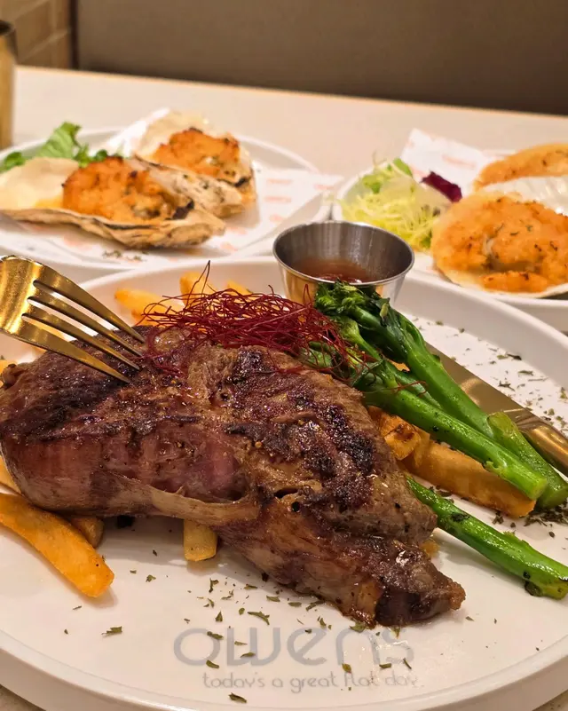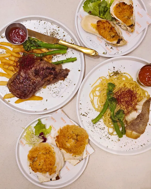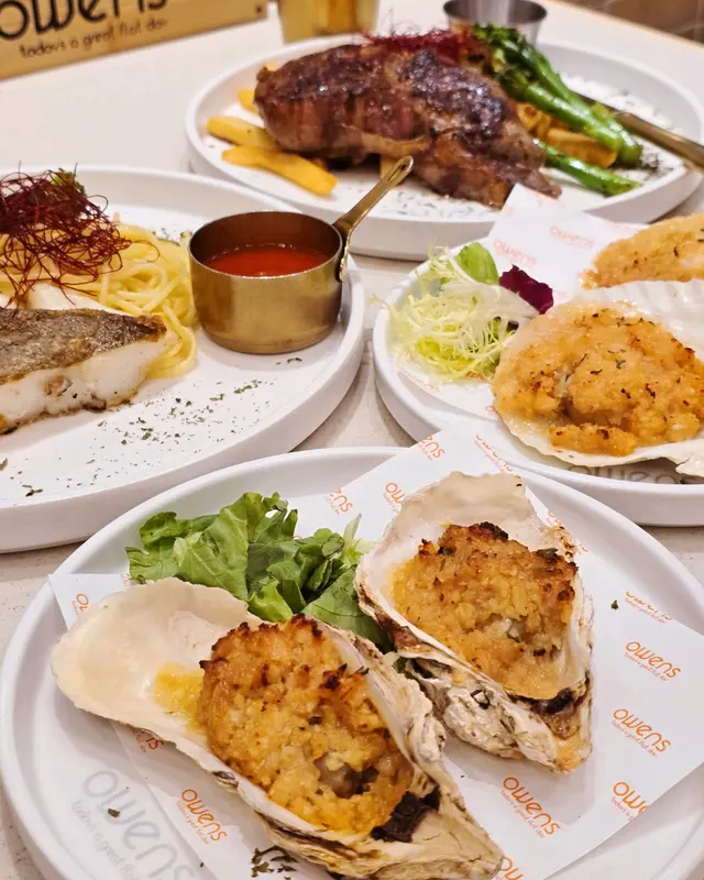 蒜蓉焗生蠔和蒜蓉焗扇貝的表層都鋪滿了金黃的蒜蓉奶油,上枱時香氣四溢。