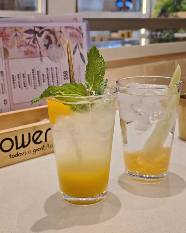 飲品點了香茅生薑蜜,有一支香茅放於杯內,以新鮮香茅與薑絲慢熬,琥珀色的蜜茶感覺溫潤;黃金時刻是無酒精飲品,以芒果汁為主,混出酸甜清爽的消暑飲品。