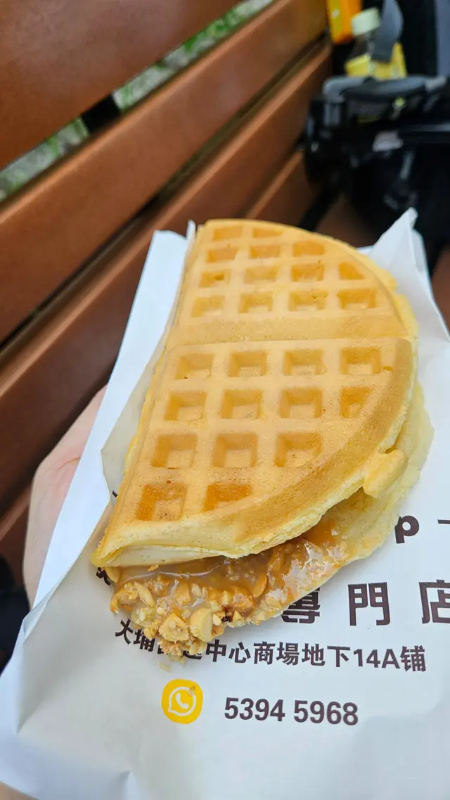 一拎上手醬多到滿瀉!格仔餅烘到外脆內軟,蛋香超濃,煉奶+芝麻醬+花生碎三重夾擊,每啖都黏住嘴唇嘅幸福感,平價滿足果然無得輸!