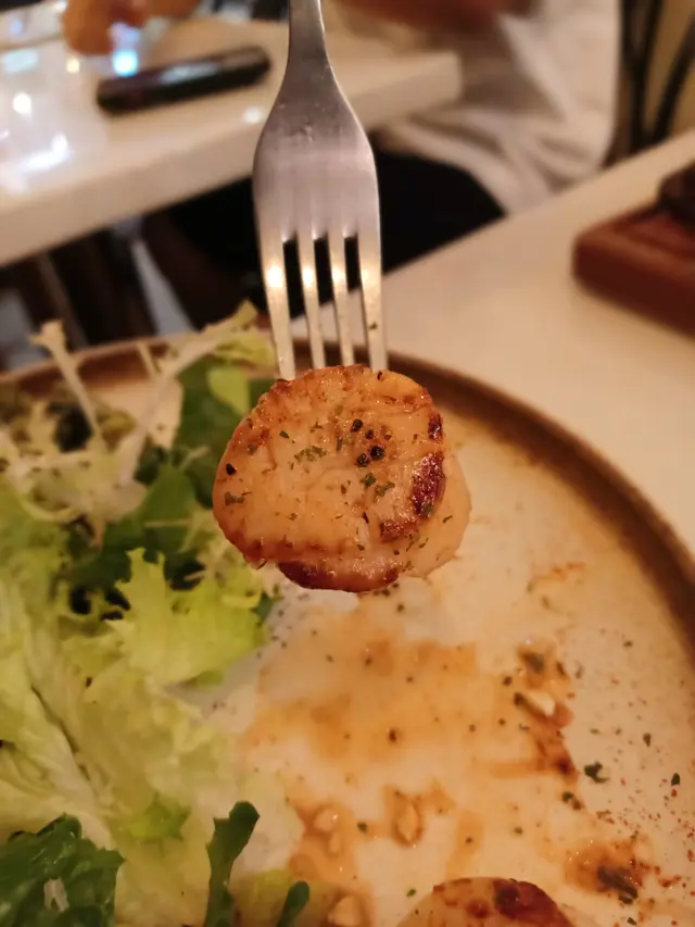 大大粒烤香帶子,鮮味十足。青醬螺絲粉配上新鮮蔬菜及忌廉,非常惹味。