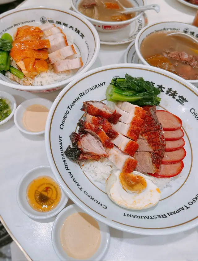 豉油雞嫩滑惹味,配搭埋蔥油,撈飯一流!燒腩仔好有驚喜,外皮酥脆,肉嘅部份肥瘦均勻得來又肉汁豐富,點埋自家秘製嘅芥末醬,整體感覺更加油而不膩~