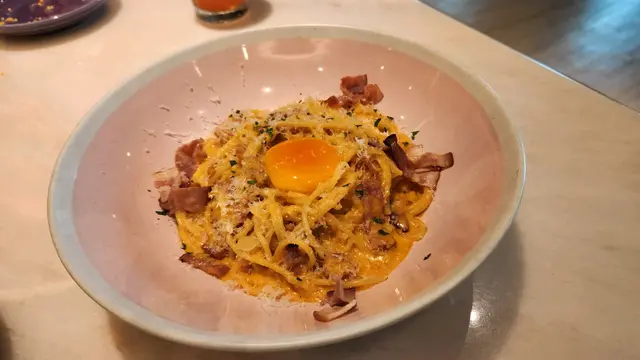 有輕微的酸辣味, 類似卡邦尼意粉的味道。