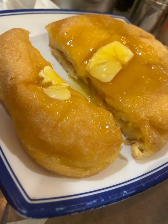像片雲的花生醬西多,比較軟身中間有花生醬,表面有牛油加上糖醬,比較甜同很膩,個人口味麻麻地太膩太淋。比起赤柱有間小店又是雲朵西多遜色,欠蛋香太膩~有點失望