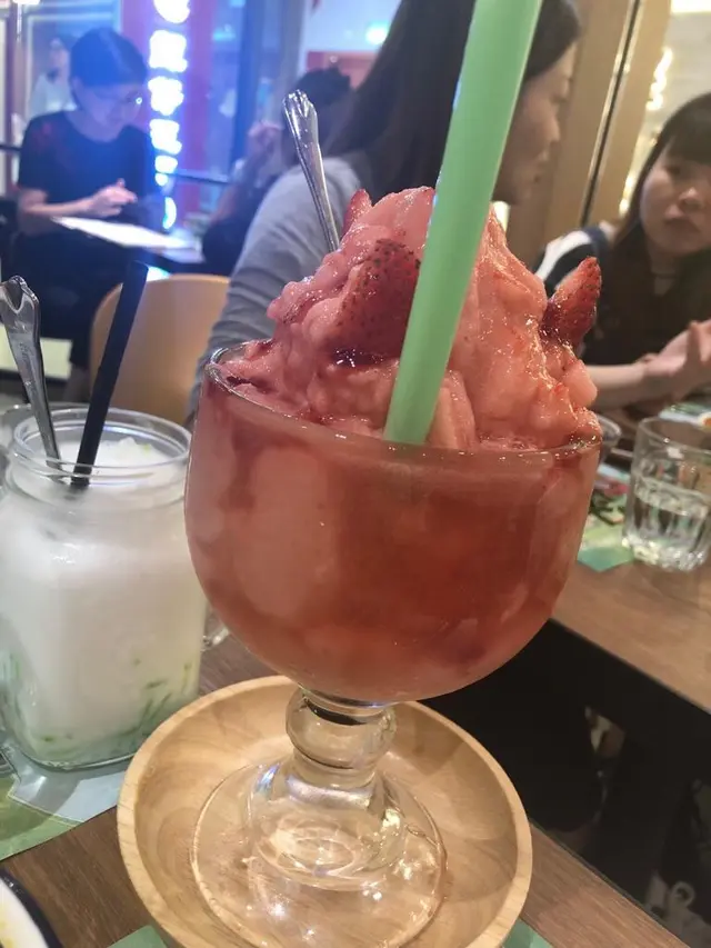 我地仲叫左兩杯特飲,一杯係珍多椰汁冰,另一杯係Cool爆鮮士多啤梨冰冰。杯士多啤梨係超大杯超大杯,一個人真係未必飲得哂,可以兩個人share📸椰汁冰好重椰汁味,佢啲粒粒都幾多,飲一淡都有幾粒咬下,加分👍🏻