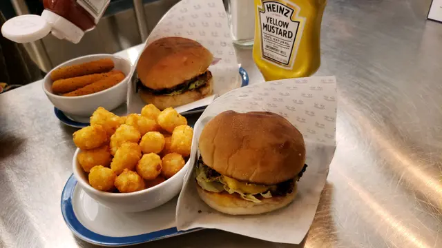 睇餐牌,有10款Burger 選擇。揀咗招牌嘢 Classic Burger 同埋 Cheese Burger,當然唔少得熱氣嘢,揀咗炸薯寶同埋拉絲芝士條。