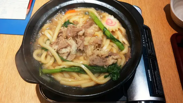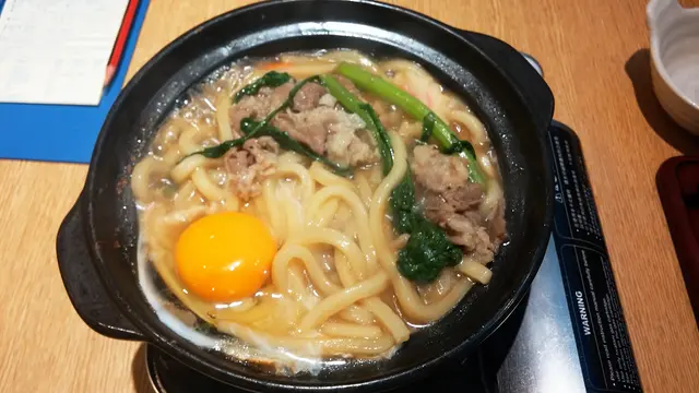 点了一个牛肉锅烧乌冬,上来是生的,有一个小炉子要自己煮的。 牛肉,蔬菜,乌冬,还有鸡蛋一只,我煮得不好,大家勉强看看图。