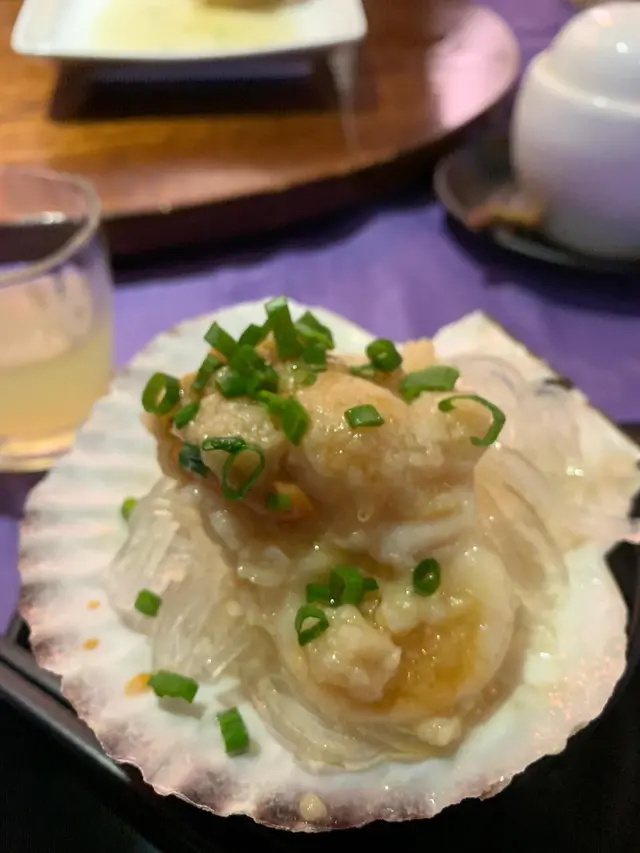 依個係金銀蒜葛絲蒸大扇貝,特別在既係佢唔同平時用粉絲,佢係用葛絲,好似食緊薯粉咁,不但只咁,廚師幫我地起曬肉先上,夠方便😋😋
