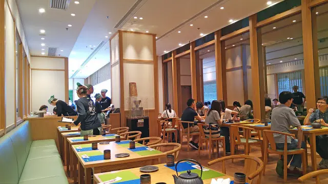 還以為會像一年前開幕時人頭湧湧, 要排上幾個鐘隊, 想起都怕怕, 深恐這種情景再發生, 於是趁星期五的半天假特登前來。 是抹茶熱潮減退? 還是市場上多了選擇? 一年前門庭若市的光景竟然不再! 試業期間, 下午一點多的時間, 不用排隊之餘, 人流明顯比當年小。那也不錯, 至少可以輕輕鬆鬆的坐下享受啊。