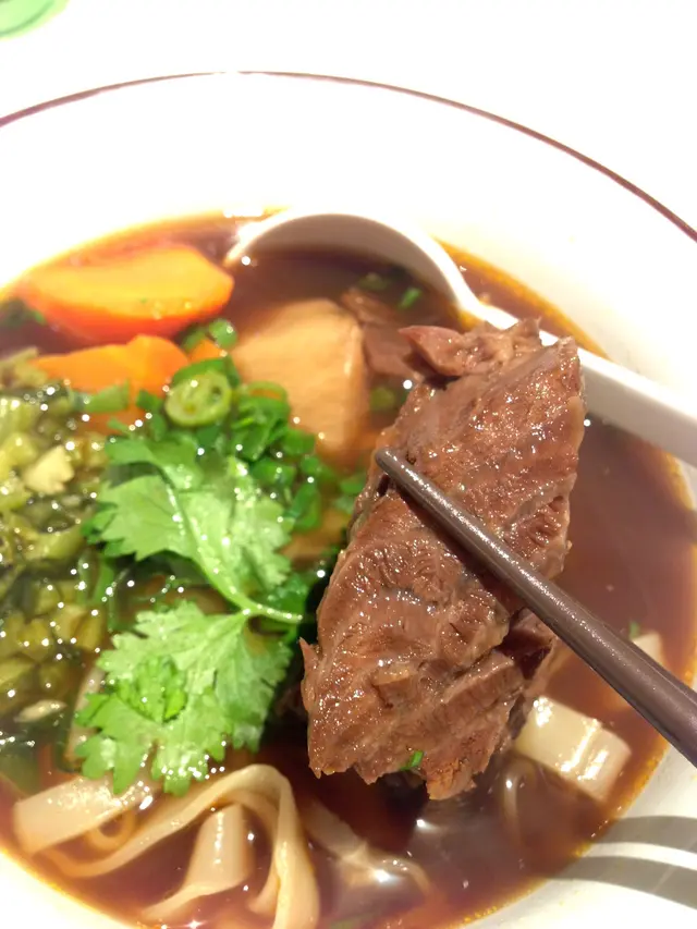 送上時立即聞到一股濃郁的紅燒牛肉香,湯底熱騰騰,味道非常濃厚,卻幾乎沒有湯油,完全不辣,鹹度控制得剛剛好。麵條甚為煙韌,很易沾上濃濃的湯底,單吃湯麵的部分已是非常美味!