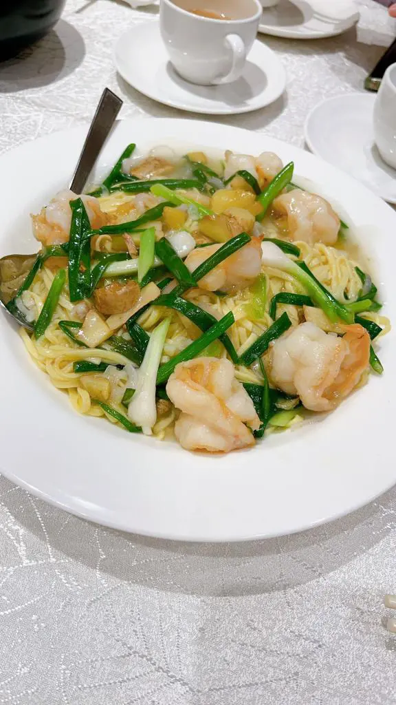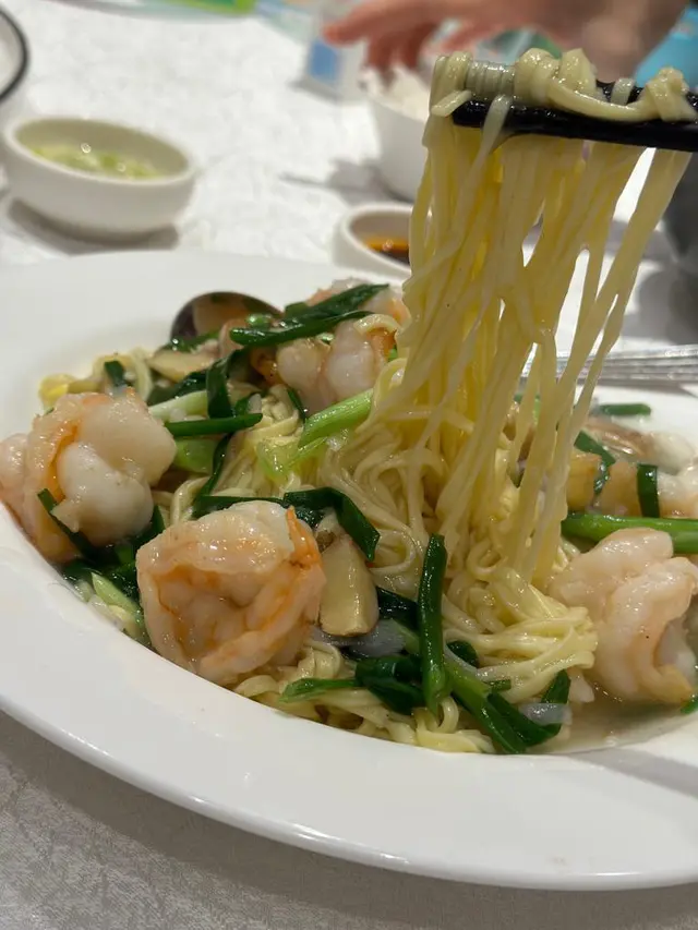 上湯大蝦伊麵,上湯味濃,材料充足,伊麵偏軟身,對我來是剛剛好。原本以為孖寶應該不會好大碟,但原來份量都很充足,我們都吃不完。