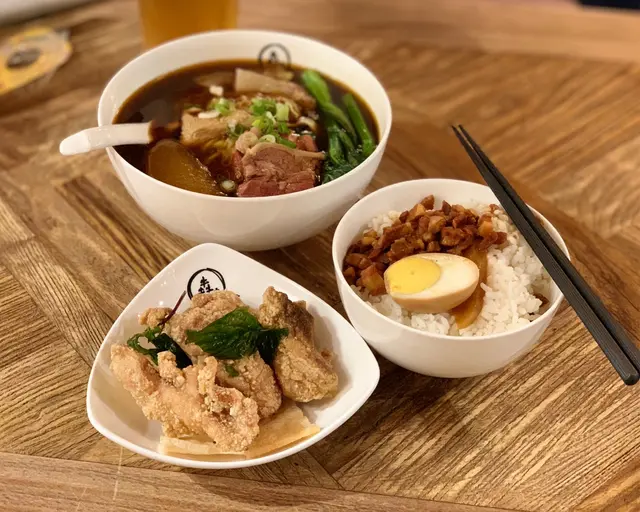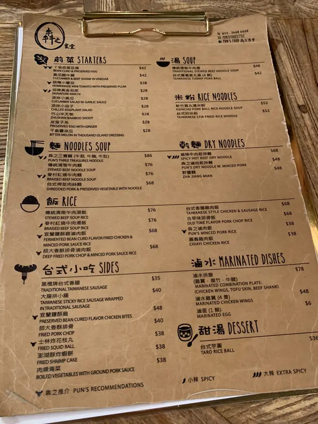 餐牌簡單一張野食,一張野飲。叫左皮蛋豆腐,花枝丸,鹽酥雞滷肉飯,招牌三寶面。