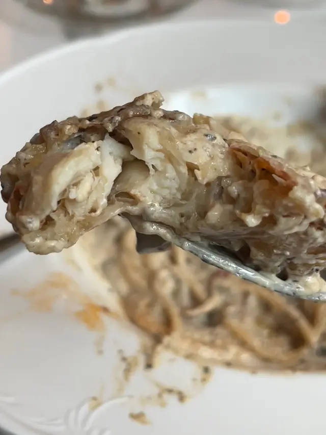 啖啖肉,絕對係中意食蟹嘅懶人首選。意大利粉軟硬適中,質地好滑溜,係我喜歡嘅口感,配料有菇、洋蔥同紅黃椒,紅黃椒有輕微酸甜味可以中和忌廉醬汁嘅油膩感,好欣賞廚師嘅心思。