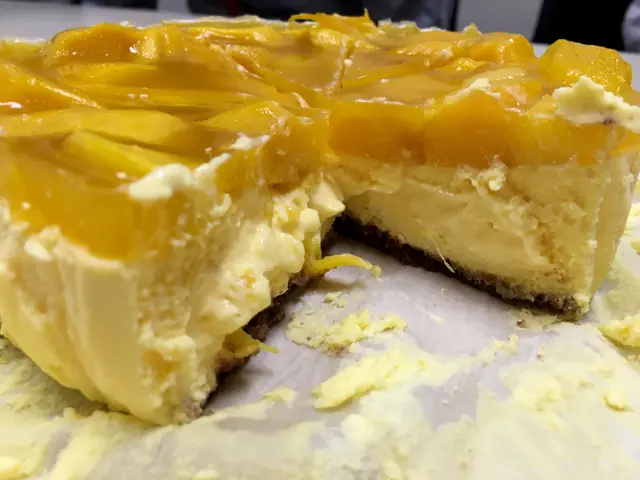 整個芝士蛋糕,大概有1/4是芒果,芒果很鮮甜。跟芝士蛋糕一樣橙黃色的,外觀上很配合。