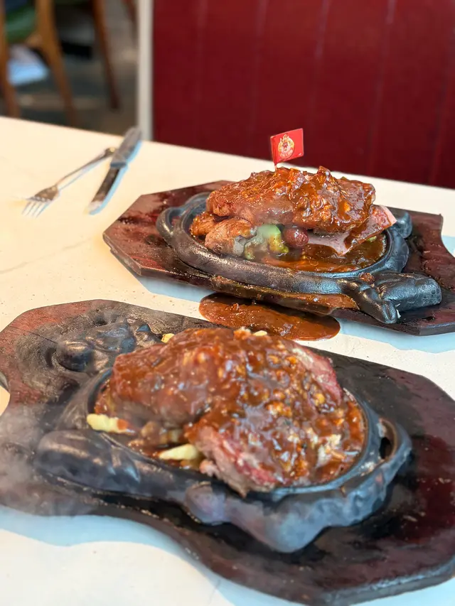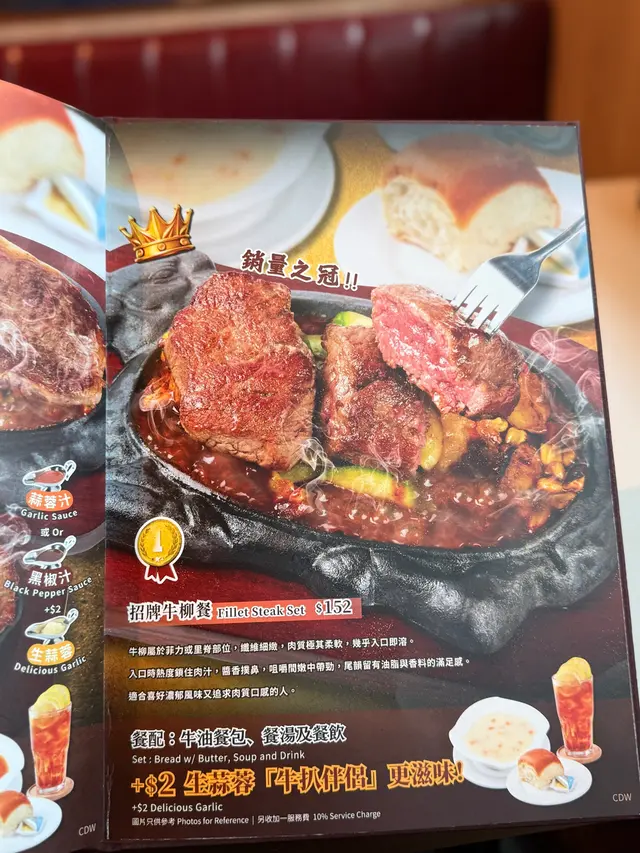 令人懷念的港式鐵板餐 waiwaitse19911129Level 42025-09-08279 views Follow 突然想食港式鐵板餐!所以去了金鳳😙上次去食都12年前😂必點🌟招牌牛柳餐牛柳口感軟腍!百幾蚊一個餐有兩塊牛柳真係抵食!上枱時仲係「炸炸聲」!真令人懷念!上枱後職員會立刻問你要咩汁!我就揀咗黑椒汁很惹味‼️入口時熱度仲鎖住肉汁!記得加$2 生蒜蓉會更好味!📌美式雜扒餐而我朋友中意大包圍!咩都要試!所以叫咗雜扒餐有豬扒、牛扒、雞翼、香腸、火腿🤩每個套餐都包含牛油餐包、餐湯及餐飲!一定夠飽👍🏻4The above review is the personal opinion of a user which does not represent OpenRice's point of view.LikeShare令人懷念的港式鐵板餐 金鳳大餐廳 (中染大廈(8咪半)) https://s.openrice.com/QrKT0I4vU00Report Post Ratings5Taste5Decor5Service5Hygiene5ValueDining MethodDine In