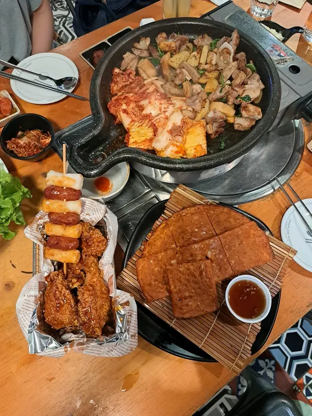 令人掛念嘅韓風美食 bin bin mumLevel 42023-07-0952 views Follow 話說開關後都仲未有時間去首爾,真係好掛住韓國嘅美食😙😙😙今日同細妹行過尖沙咀發現左有呢間鋪好特別所以就入去試下啦打開meau每樣野都好吸引,店員已經拿拿聲俾左個前菜我地,分別有泡菜,芽菜,雞蛋粒同醃菜,我地首先點左個燒豬肉套餐,仲有個泡菜煎餅,同埋唔少得嘅炸雞加年糕串添😋😋😋 店員好純熟把生嘅豬肉放入個鍋度燒,反兩反,炒兩炒已經聞到好香,之後再剪開細細件,我地翹埋雙手就可以食啦,跟住再上就係炸雞,炸雞表層係酸酸甜甜嘅脆漿,雞肉好嫩滑,年糕都好煙靭。The above review is the personal opinion of a user which does not represent OpenRice's point of view.LikeShare令人掛念嘅韓風美食 Bingo & Cook (港匯廣場) https://s.openrice.com/QrKT0Vuyb00Report Post Ratings5Taste5Decor5Service5Hygiene5ValueDining MethodDine In