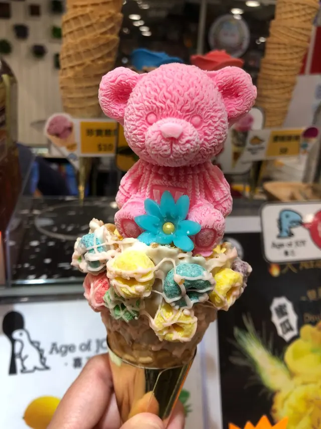 嘩果然係好開心好興奮,老闆好nice,由揀雪糕筒款式、雪糕味道同bearbear雪糕味道,對我地都好有耐性,而且我見佢都好用心去整,仲有又忍得到我同朋友兩個喺度自high發神經,係噤喺度話好得意好靚唔捨得食,真係救命