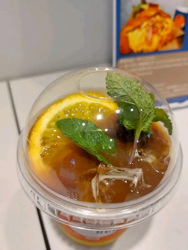 飲品揀左特色black coffee-鮮橙啡 同奶泡白桃烏龍茶,之前都冇試過鮮橙啡,估唔到飲落又幾夾,原片橙片加上咖啡,酸甜味互相溶入,味蕾上嘅新刺激。奶泡白桃烏龍茶個茶底都幾香,加上香滑奶泡已經好好飲,仲要有一粒粒白桃肉,有咬口得嚟令飲品香甜味更加升級,用料十足,讚!