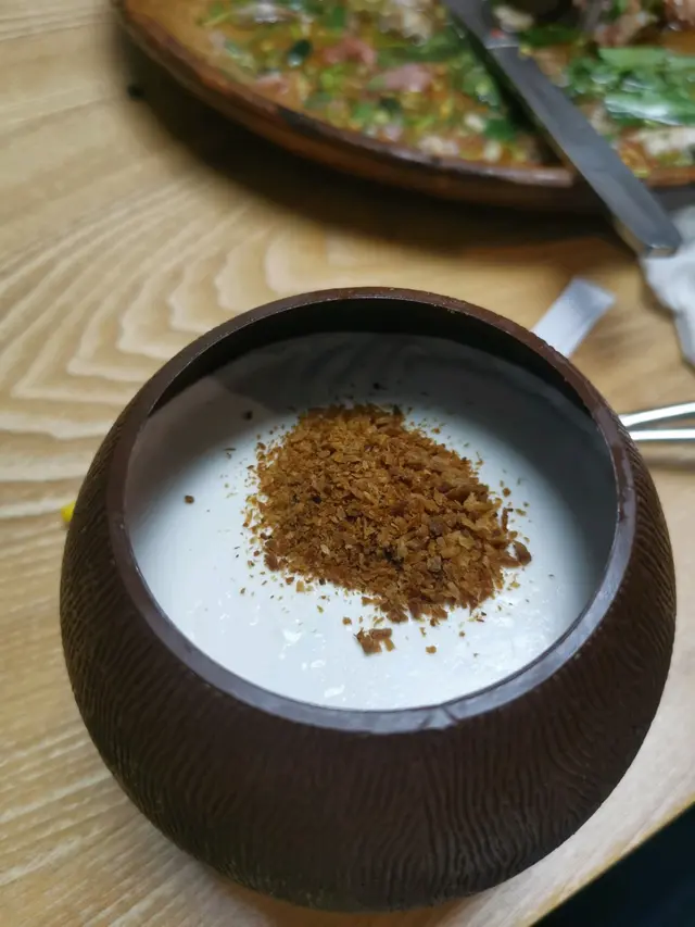 最後甜品是椰皇三重奏 頂層是類似椰肉乾碎非常脆口。中間是椰汁忌廉,類似椰汁糕的表層,而最下層的是椰汁大菜糕,香甜爽口。一個甜品有三重口感,不愧是三重奏 ,感覺新穎。