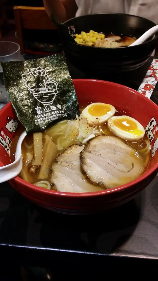 當入到舖內感覺到有少少日本氣息(起碼店員用日文招呼),地方不大以日本風格裝修再加Hello Kitty 作裝飾(吸引到好多慕名而來既人)。好喇,到正題~看看餐牌先(款式不多)很快就選好拉麵(黑油拉麵&白蝦拉麵)全名當然唔係咁叫