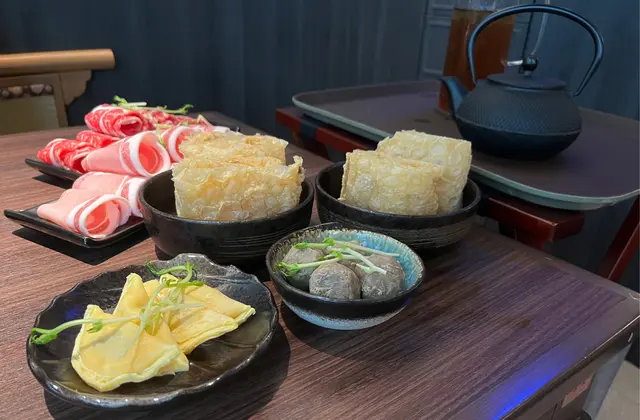 火鍋少不了配肉肉,餐廳於午市有優惠套餐,$288就有半份牛小排、日本黑豚腩肉/日本黑豚肩肉,再配一份手工瑤柱滑/ 一品蟹滑膏/ 手工蝦滑。只要加多$98就可以要濃香豆皮,及一渣烏梅汁/ 菊花露。