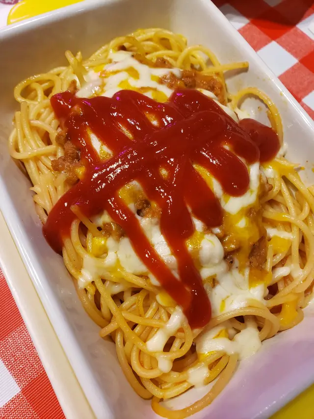 好有節日氣氛, 用蕃茄醬整咗個聖誕樹, 好有心思呀😊, 意粉佈滿肉醬, 軟硬度適中.