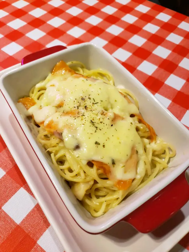 焗刁草芝士汁煙三文魚珍珠帶子 意粉
