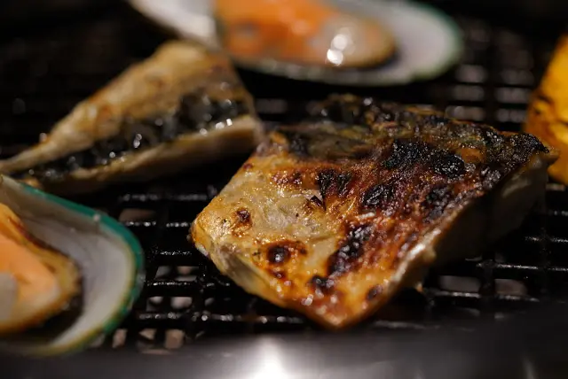 海鮮拼盤的內容有鯖魚、青口和扇貝, 款式不多但質素不俗。特別是青口, 肉質飽滿, 入口香甜味美, 連不太愛吃貝類的我也覺得不錯。燒鯖魚的味道很香, 大家也不陌生, 也是吃得太多好肉之中的一個好間場。