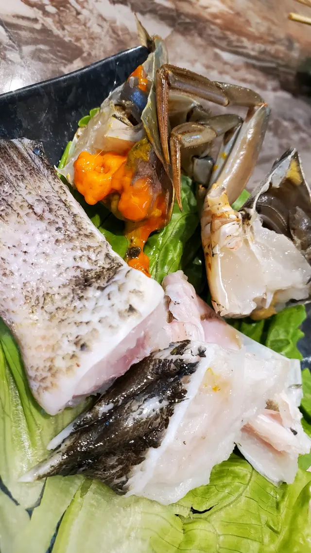 我哋叫左蟶子皇,花甲,海蝦,青蟹,龍躉頭腩,白鱔片,太子蚌,安格斯牛小排,黑松露墨魚滑,,韮菜餃特大魚皮餃,日本巨型蟹棒,炸支竹,西洋菜。😋😋😋