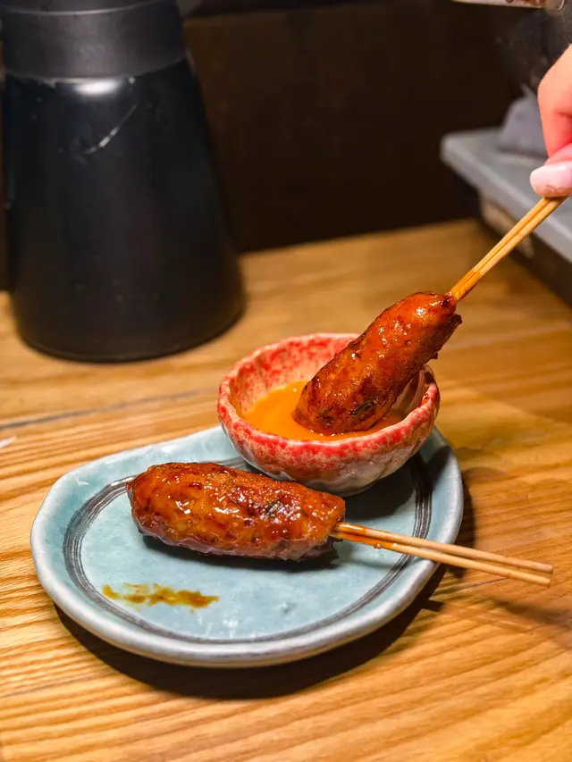 自家製雞肉棒可以揀【鹽燒或汁燒】,我咁重口味當然揀汁燒啦😚 朋友覺得偏鹹但係我覺得好惹味🤤 配埋生雞蛋黃真係超正🤤