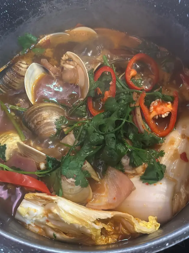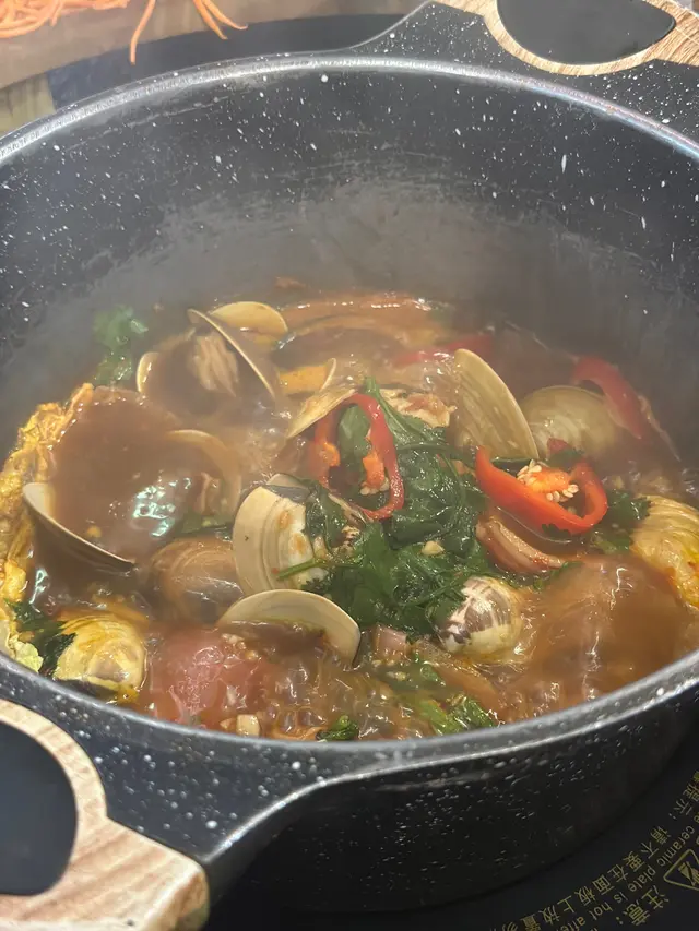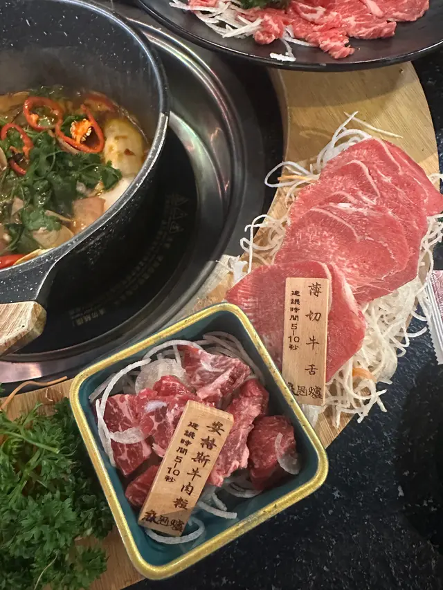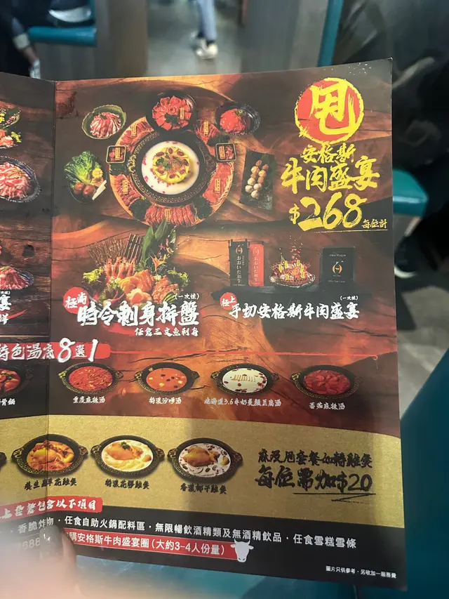 睇完餐牌,今次叫既係「麻」 海鮮盛宴+ 動L時令海鮮盛宴(任食精選海鮮) + 時令刺身拼盤 + $188 叫埋安格斯牛肉盛宴圈。 特式湯底有8款,今次試左混你個醬卜卜蜆鍋,個名夠晒搞笑😂😂😂 一上煲已經超級香,食落口夠晒惹味👍🏻👍🏻 真係唔係同你講玩笑,超正!! 之後可以自助加湯開始打邊爐啦,令人最期待既安格斯牛肉盛圈😍😍 有齊唔同嘅部位,美國頂級牛小排、美國安格斯牛頸脊、頂級封門柳、安格斯牛肉粒、薄切牛舌同埋金錢展等等… 牛肉味道濃郁,佢嘅色澤同埋牛花分布都好靚好平均,一次過滿足晒唔同嘅口感,大滿足!!仲有不得不提嘅刺身拼盤,刺身好新鮮,有北寄貝、三文魚、帶子等等,三文魚仲可以任食嘅添!! 火鍋自助區有齊唔同嘅蔬菜類,豬皮,魷魚等等都會有,而且所有套餐均可享無限暢飲酒精類及無酒精飲品,任食雪糕雪條架!!
