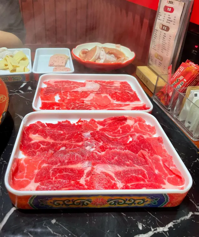 見到午市晚市單點經openrice訂位分別有68折/78折優惠,亦可以揀任食火鍋,我同朋友決定揀任食放題,揀左$168既極上套餐,150分鐘任飲任食,有五款肉類任食,包括美國特級肩胛肥牛、澳洲安格斯牛板腱、澳洲高鈣小肥羊、西班牙五花腩片同雞肉件,另外亦有豬黃喉、鵝腸、黑毛肚、鴨血等廿幾款單點任食選擇。個人覺得整體D肉都唔錯!