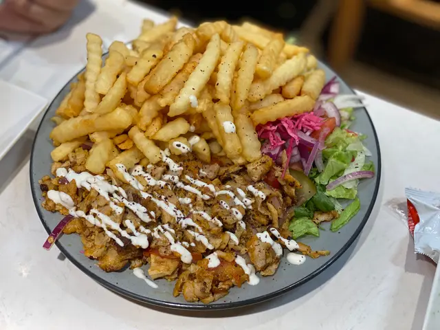 呢個係超級意想不到咁大碟😮 完全滿足到我呢個薯條愛好者 香烤野雞調味調得好好 加埋少少洋蔥碎 我地食到停唔到口