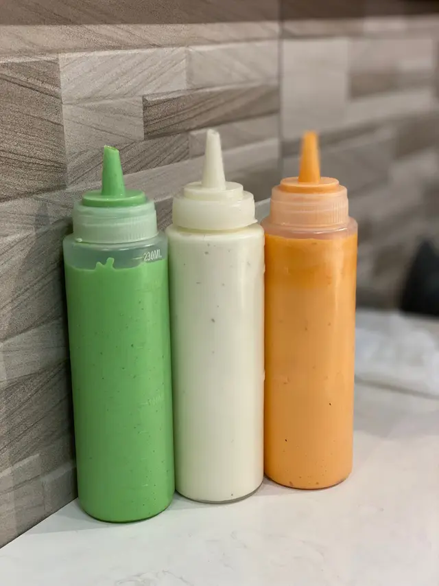 枱上面仲有3枝醬汁 有需要可以因應自己口味加落唔同野食度