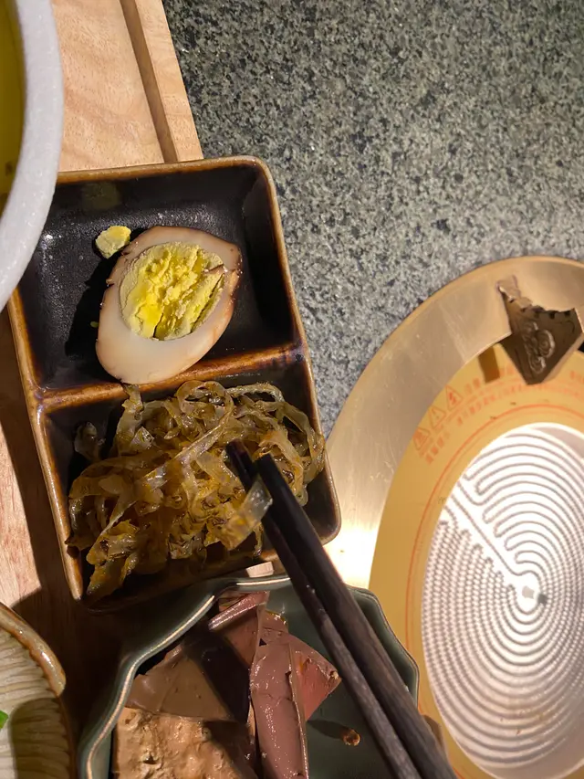 配菜有鴨血滷蜂巢豆腐。吸晒啲汁。有台灣滷水嘅味道!鍾意食鴨血嘅朋友,絕對岩食~ 至於隻雞蛋🥚,略為有啲苦澀。可能係茶葉或者滷水汁嘅問題🤔 我就麻麻地like.