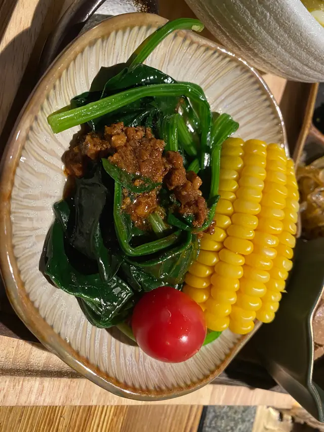 果涼拌魚皮好開胃,配麵食一流!可以解左湯底既辣。魚皮爽脆,醃料帶點微辣,幾惹味😋 仲有個肉燥菠菜配甜粟,粟米香甜冇渣,菠菜配上肉燥即刻冇咁寡。