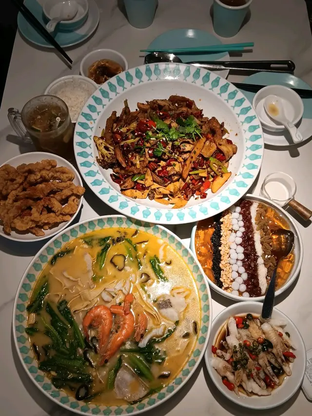 清新騰椒湯,材料自由搭配,有鮮蝦,鮮豆皮,油麥菜,木耳,豚肉,鱸魚片,湯鮮帶有藤椒噶清香,一口一口食唔停。