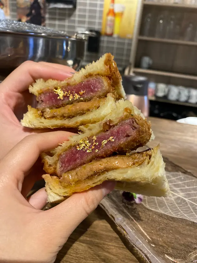 超邪惡的和牛三文治! 吉列牛扒外脆內軟, 肉汁豐富, 麵包亦烘至香脆, 牛油味重!