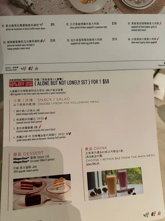佢嘅晚市menu有煙辣腸蜜糖南瓜忌廉長通粉,通粉加上較為creamy的醬汁,帶有少少南瓜同埋蜜糖嘅甜,亦有南瓜清新嘅味道