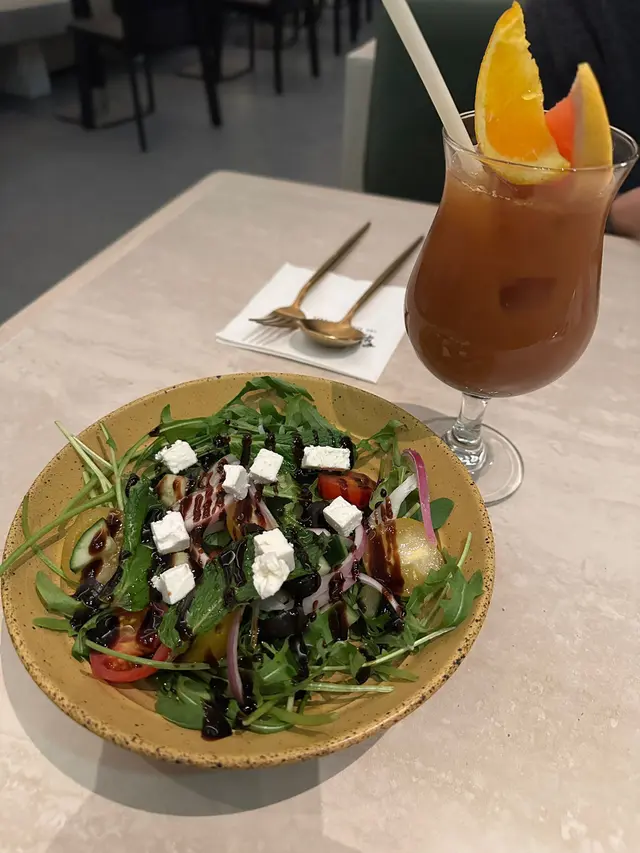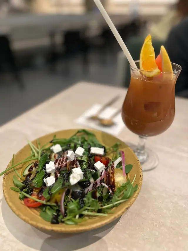 老公揀咗水果茶,有西柚同埋橙在杯面,味道好清新