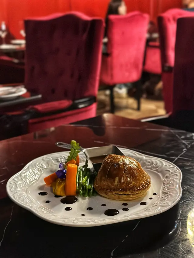 威靈頓牛柳:酥皮焗得金黃香脆,內裡牛柳保持粉嫩,肉汁鎖得唔錯,配上特製醬汁,非常signature嘅一道菜式!
