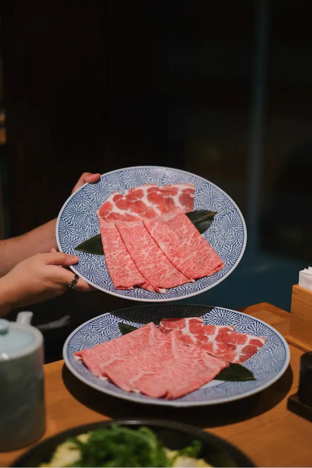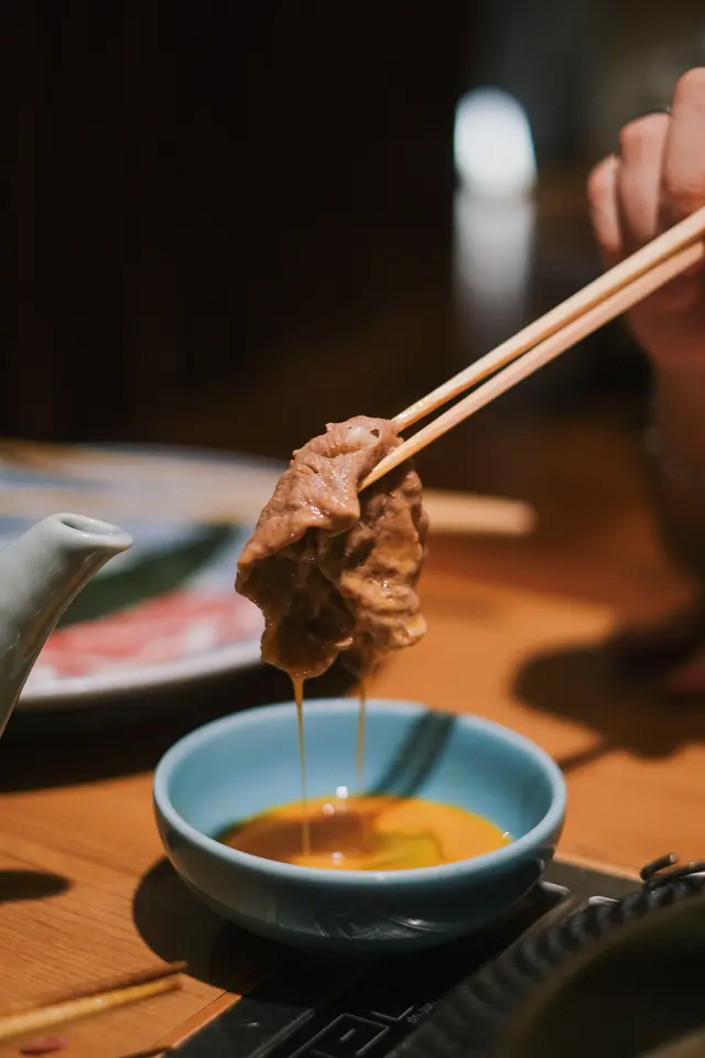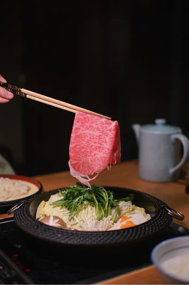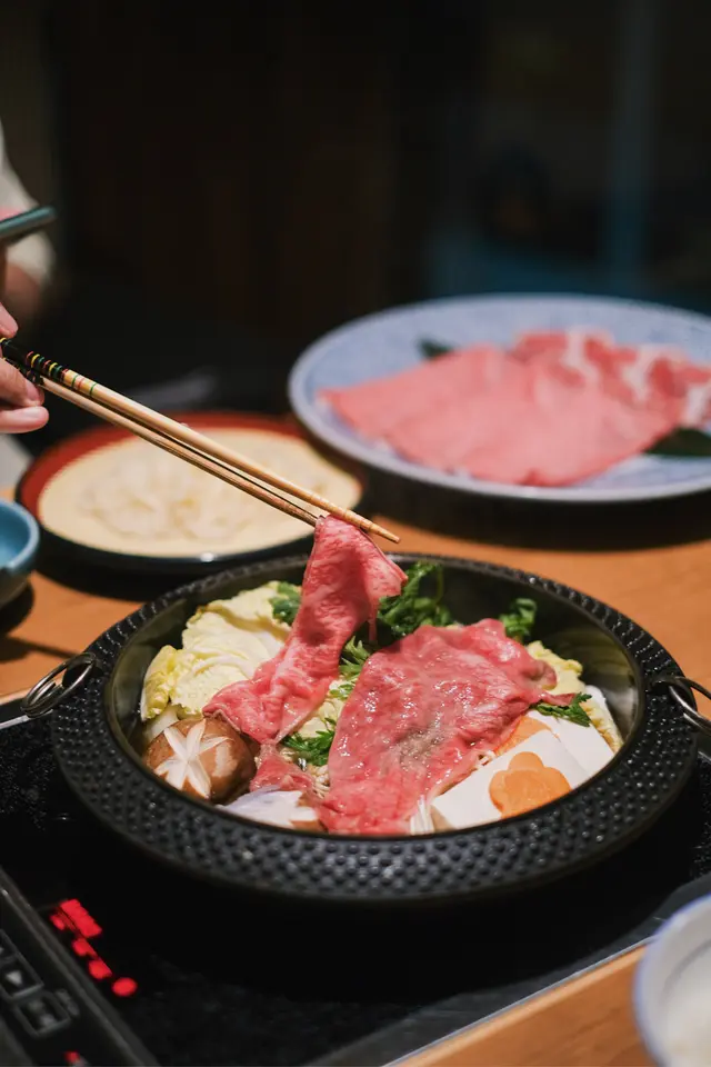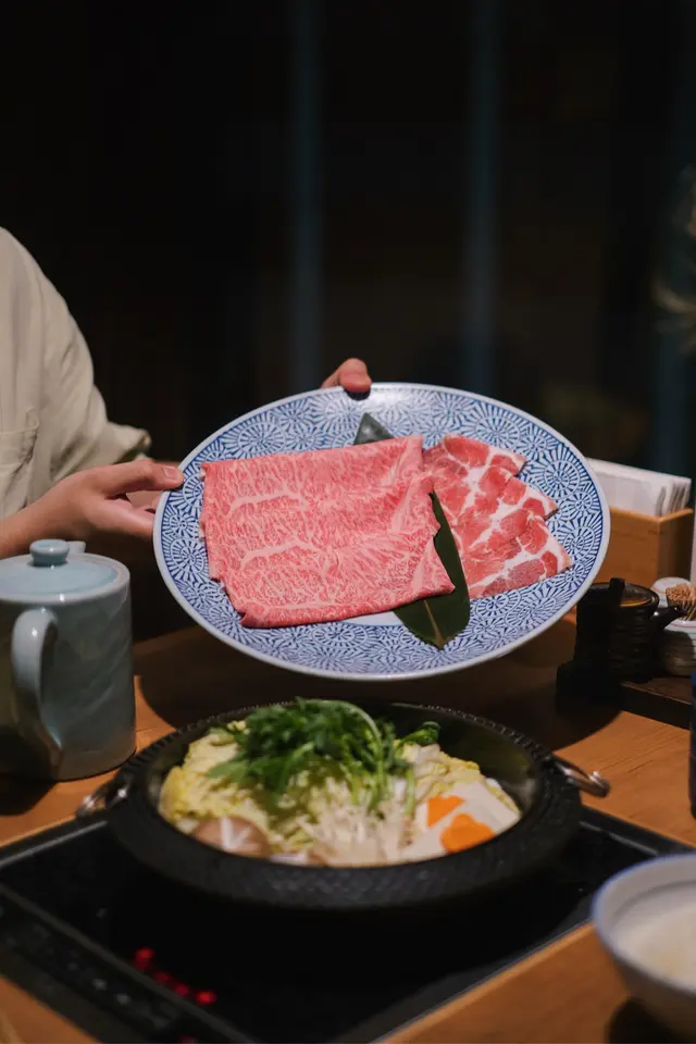 傳統日式壽喜燒 ,用上鑄鐵淺鍋,放入野菜盛,再自行加入日本正宗秘製壽喜燒汁!好鐘意可以一次過試匀宮崎和牛 & 北海道豚肉,咁嘅組合唔會過於油膩✨ 和牛肉質細嫩,油脂感豐富,沾上蛋汁超滿足!