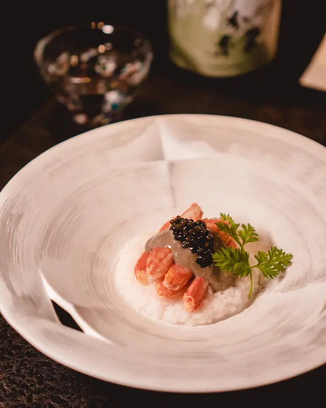剛好是松葉蟹的季節 有拆了肉的蟹腳吃很幸福❤️ 前菜使用味道較淡的手切山藥蓉配濃味魚子醬 是道清爽的前菜