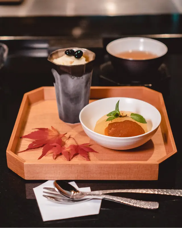𓇢𓎦 風干柿芝士卷 燒青森蘋果 柚子雪葩 Dried Persimimon with Cheese Roll, Grilled Aomori Apple&Yuzu Sorbet