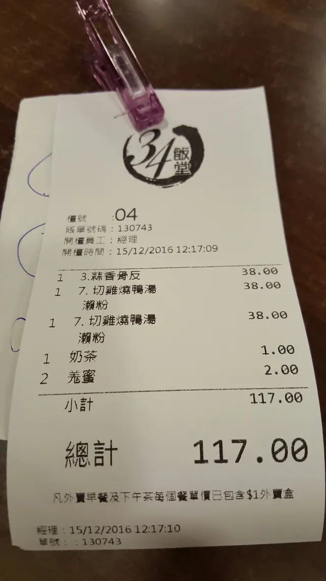 低食茶餐廳,一分錢一分貨 龜爺JjAySLevel 42016-12-15402 วิว ติดตาม 午餐食平野,同同事去食lunch,日日都唔知食咩,反正聽日食公司餐,今日去食平野,咁就想起前日路過見一間唔錯晚餐廳,打住抵食 38蚊,所以一試! 去到先睇餐牌我同我同事想食牛脷可惜賣哂,anyway 點都要選我就選左蒜香骨飯,兩個同事就燒鴨切雞藾 佢地送餐湯,不過唔好expect太好,我去開個間好好多例湯蒜香骨飯幾香口,不過條菜就好淡,同埋個飯就硬左d蒜香骨飯燒鴨切雞藾都正正常常唔會太差燒鴨切雞藾粉不過佢地唔同既係 熱飲要加一,凍飲加三 overall 唔算出眾,一分錢一分貨啦唯一好就係地方大,坐起來好多空間รีวิวด้านบนคือ ความคิดเห็นของผู้ใช้ ซึ่งไม่ใช่ความคิดเห็นของ OpenRiceไลค์แชร์低食茶餐廳,一分錢一分貨 鴻圖34 https://s.openrice.com/QrKT0KoCf00แจ้งปัญหา โพสต์ คะแนน3รสชาติ3การตกแต่ง3บริการ3ความสะอาด3ความคุ้มค่าวันที่ไปกิน2016-12-15วิธีการกินDine Inราคาต่อคน$39 (Lunch)
