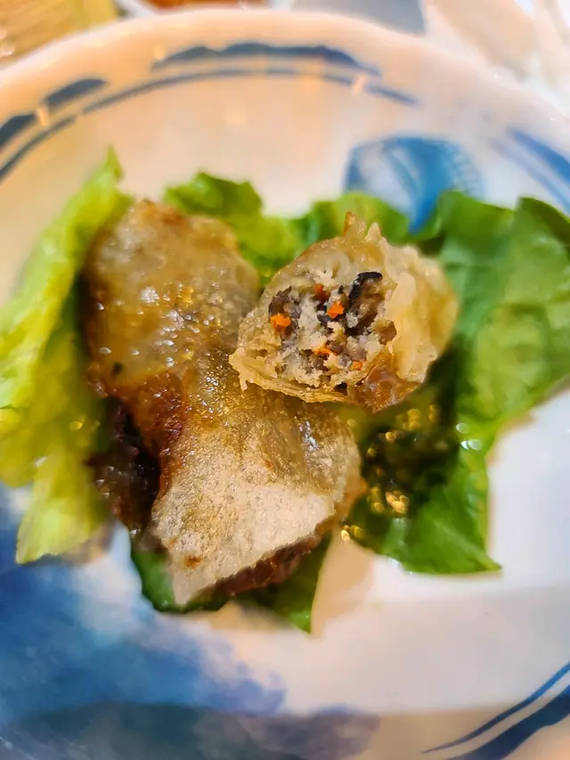 越萊自制手工春卷:春卷皮咬落去脆卜卜,餡料足,配埋酸味味既汁好開胃。