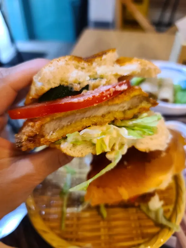 法式吉列豬排包: 吉列豬排炸到好香脆好香口,唔會油淋淋又唔太乾身,配生菜蕃茄沙律醬好夾好惹味。