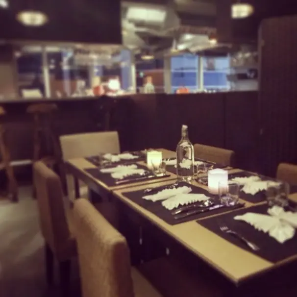 店內格局,open kitchen讓環境變得開揚,我們一行六人六時半左右去到,落地玻璃映照的天色還是藍的.