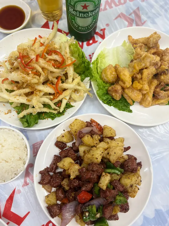 點了三碟小炒,都相當有鑊氣!!味道甚佳,而且份量不少。去大排檔當然要飲啤酒,點了喜力啤酒啤一啤佢~