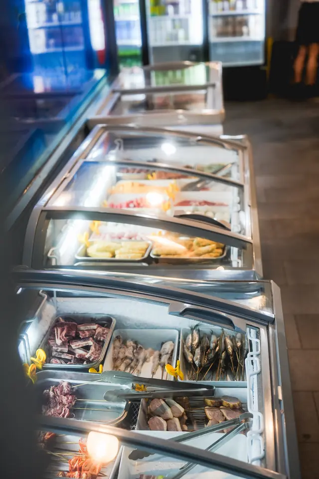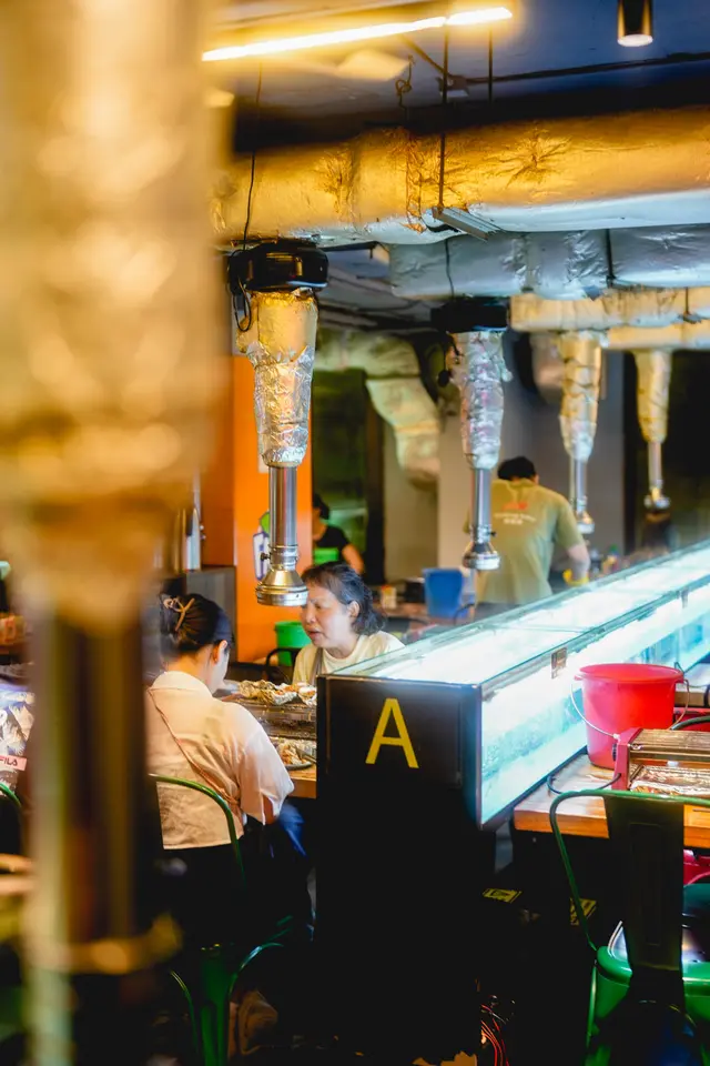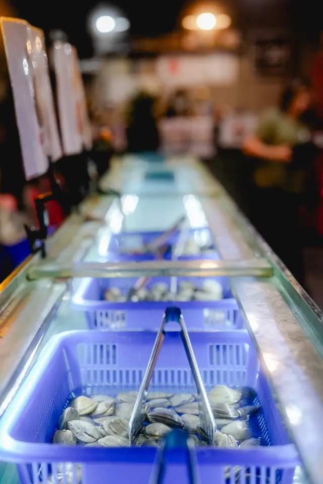 環境方面,有唔少典型的標語座位,而煮食燒烤區的每行座位旁都有一條大水缸,裏面有好多隻生猛流水蝦,夾完之後放入冰筒浸(大家會唔會玩生燒大頭蝦就睇自己膽量同能力啦)蝦身厚肉入口彈牙。
